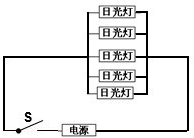 分析:家庭电路电压是220V,每盏电灯的额定电压也是220V,这五盏灯是并联的,有五条支路.