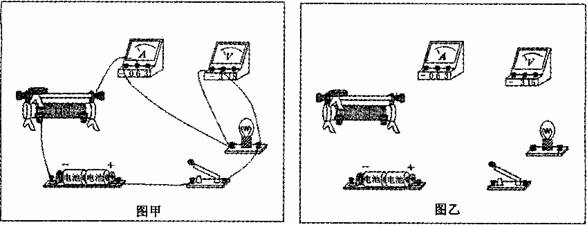 (1)安培表正负接线柱接反;(2)实物连线图如右图所示;![]()
