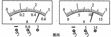 (3)若在某次实验中,电流表、电压表的读数如图丙所示,则电流表读数为________A,电压表读数为_______V,小灯泡此时的实际功率为___________W。![]()