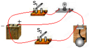 (2)灯泡和电铃并联,各有一个开关控制,如图所示: