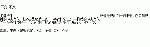 酒精灯中的酒精燃烧一部分后,剩余的酒精热值_____,比热容_____(选填“增大”、“减小”或“不变”).