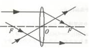 如图所示,F、O分别为凸透镜的焦点和光心,请在图中画出平行立光轴入射的光线经过凸透镜后的折射光线。