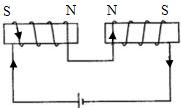 (3)电源的外部电流的方向是从正极流向负极,根据螺线管中的电流方向,结合安培定则标出螺线管的磁极,如下图: