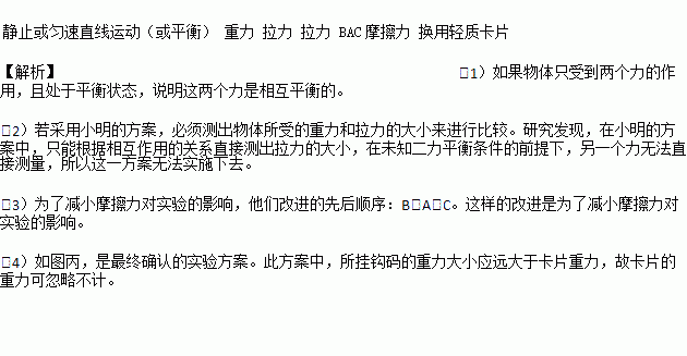 £¨4£©Èçͼ±û£¬ÊÇ×îÖÕÈ·ÈϵÄʵÑé·½°¸£®´Ë·½°¸ÖУ¬ÓÉÓÚ________£¬¹Ê¿¨Æ¬µÄÖØÁ¦¿ÉºöÂÔ²»¼Æ£®