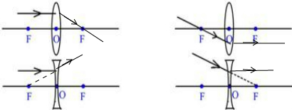 点评:本题考查了透镜的特殊光线.注意凸透镜和凹透镜要分清,且光线上要标出箭头.