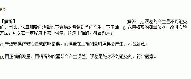 B. 选用精密测量仪器,改进实验方法,可以减小误差;