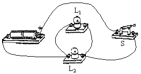 如图甲所示.自制的转换开关M上的A、B、C、D是四个按在木板上的图钉,其中B和C上各套一个曲别针,曲别针与图钉帽紧密接触但能转动.请按下图乙所示电路图,以笔画线代替导线将下图甲中的器材连接起来.