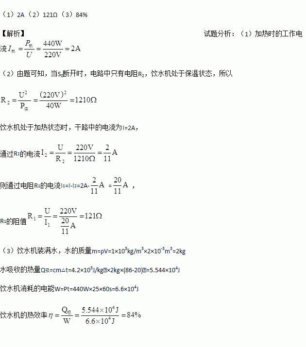 (3)若将水箱内装满20℃的水,需要工作25min才能加热到86℃.求该电热饮水机的加热效率.[c水=4.2×103J/(kg·℃)]