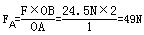 如图所示,杠杆AOB处在水平位置平衡,OA:OB=1:2,浸入水中的铁球质量m=7.9kg,加在B端的力F=24.5N,ρ铁=7.9×103kg/m3,g=10N/kg。则空心体积为