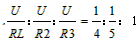 ,RL:R2:R3=UL:U2:U3=4:5:1。即电阻R2、R3之比为5:1