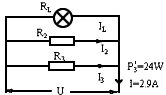 如下图所示电路,设电源电压不变,灯丝电阻不随温度变化。当开关S1、S2断开时,电压表V1、V2示数之比为2:1,R3消耗电功率为0.24W;当开关S1、S2闭合时,灯正常发光,R3消耗电功率为24W,电流表的示数为2.9A。求: