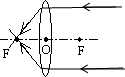 解:对于凸透镜,折射光线过焦点,则入射光线与主光轴平行,如下图所示.