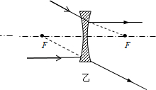 (1)如图甲,凸透镜的焦距为1.50cm,O为透镜的光心.请按照实际尺寸标出凸透镜右侧焦点F的位置,并画出图中入射光线所对应的折射光线.