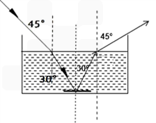 如图所示,光从空气斜射入某种液体中,被水平放置于液体底部的平面镜反射,最后返回空气中。请在图中画出经平面镜反射的光线和在水面处的折射光线。