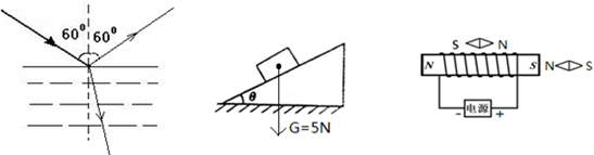 解:(1)根据入射角为60°.过入射点作出法线,利用光的反射规律作出反射光线:反射光线与入射光线分居法线两侧;反射角等于入射角等于60°;由此可以画出对应的反射光线如下图所示.
