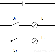 解答:解:从正极开始分支,一支经灯泡L1、开关S1回到负极;另一支经灯泡L2、开关S2回到负极,如图:
