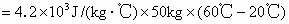 太阳能热水器利用太阳能直接给水加热,它安全环保且节省能源,一热水器的水箱内装满50kg的水,在阳光下照射一段时间后,水温从20℃升高到60℃.问: