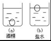如果将一个和水的密度相等的小球投入盛有酒精或盐水的容器中,请在图 (a)(b)中分别画出小球静止时的大致位置.
