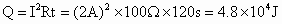 100Ω,通过的电流为2A,通电2min产生的热量是________J.