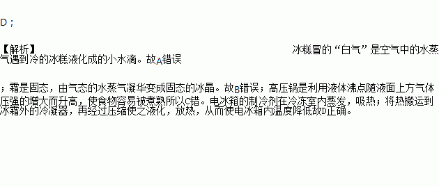 D. 电冰箱是利用致冷物质迅速汽化吸热,使电冰箱内温度降低