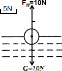 解答:解:静止在水中的小球受到竖直向下的重力和竖直向上的浮力作用;先一段表示5N的标度,然后过小球的重心作竖直向下的重力和竖直向上的浮力,大小都为10N,如图所示: