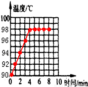 Ôڹ۲조ˮµÄ·ÐÌÚ¡±ÊµÑéÖУ¬µ±Ë®ÎÂÉýµ½90¡æÊ±£¬Ã¿¸ô1min¶ÁÒ»´ÎζȼƵÄʾÊý£¬Ö±µ½Ë®·ÐÌÚ5minºóÍ£Ö¹¶ÁÊý£¬Êý¾Ý¼Ç¼ÈçÏÂ±í£º| ʱ¼ä/min | 1 | 2 | 3 | 4 | 5 | 6 | 7 | 8 | |