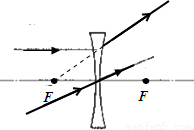 点评:凹透镜有三条特殊光线:过光心的光线其传播方向不变;指向另一侧焦点的光线经凹透镜折射后折射光线平行于主光轴;平行于主光轴的光线经凹透镜折射后折射光线反向延长通过焦点.