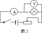 电流表选0~0.6A量程,电流表串联在电路中,电压表与灯泡并联,电路图如图1所示.