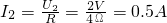 一段导体两端电压是4V,导体中电流强度是1A,若导体两端电压2V,则导体中电流是 ________A.