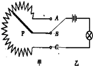 收音机内调节音量的元件叫电位器,如图所示,甲图P旋片可随转动旋钮改变在碳膜的位置,如果要将甲图连入乙图,并且逆时针旋转P旋片,使收音机音量增大,导线应怎样连接?试在原图上作出.