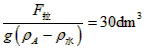 ∴GA=ρAgVA=900N, 10dm3浸入时:∵F'浮=ρ水gV排=100N,∴F'拉=GA-F'浮=800N ,