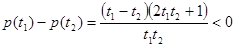 得 t≥1,
