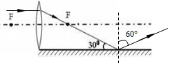 21、如图所示,一束光射向凸透镜经折射后,折射光线射到一个平面镜上.请在图中画出射向凸透镜这束入射光和经平面镜反射的光路,并标出反射角的度数.