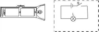 在下图中结合手电筒的实物图,在右边虚线框内画出手电筒的电路图