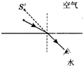 解:连接S′与人眼,与水面相交于一点,确定出折射光线,与水面的交点是入射点.通过入射点做出法线,根据光从空气斜射入水中时,折射角小于入射角做出入射光线.