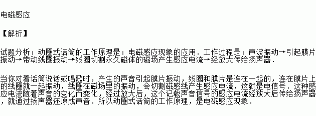 我们唱卡拉OK时,要用到话筒.如图是动圈时话筒构造示意图,其工作原理是 .