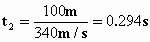 在15℃空气中,声音传播速度是340m/s,光在空气中传播速度为 光传播100m需要的时间为 这个时间非常小,可以略去不计,认为在终点的计时员看到发令枪的烟火时刻,就是运动员起跑的时刻。 声音在空气中传播100m所需时间为 声音传播 100m需要的时间比较大,不能略去。如果位于百米终点的计时员听到发令枪声才开始计时,开始计时的时刻比运动员起跑时刻晚0.294s,记录时间比运动员的实际成绩少了0.294s。 |