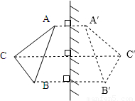 【答案】分析:依据平面镜的成像特点,分别做出A、B、C点关于镜面的对称点,然后连接,就是△ABC在镜中的像.
