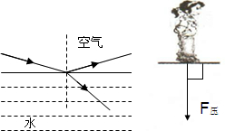(1)一条光线照射到水面发生反射和折射,这条光线经水面折射后的光线如图1所示.请在图1中画出它的入射光线和反射光线的大致方向.