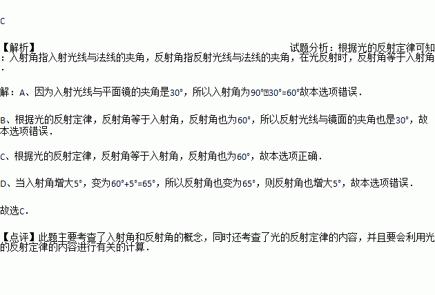 C. 反射角是60°