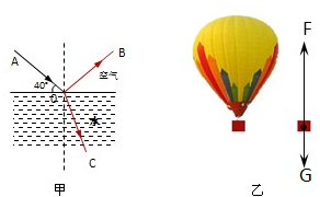(1)如图甲所示,入射光线AO与水面成40°角斜射向水面.请作出反射光线,并大致作出折射光线.