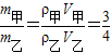 (2)由密度公式变形得m甲=ρV甲,m乙=ρV乙