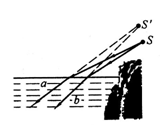 如图所示,a 、b 为岸上灯泡S 发出的射入潜水员眼睛的两条光线,在图中画出潜水员看到岸上灯泡S 的像S’.