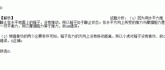 D. 小虎对箱子没有做功