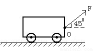 用一水平面成45º的力F在小车的O点上向右拉小车,试画出该力的示意图。![]()
