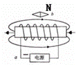 解:因外部磁感线由N极指向S极,故螺线管左端为N极,右端为S极,则则小磁针b端为N极;