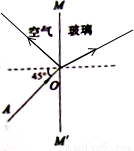 解答:解:折射光线从反射点O在法线上方的空气中斜向上画出,注意反射角等于入射角;