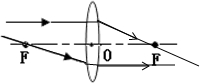 解:对于凸透镜,过焦点的光线经凸透镜折射后折射光线平行于主光轴;平行于主光轴的光线经凸透镜折射后折射光线通过焦点.如下图所示: