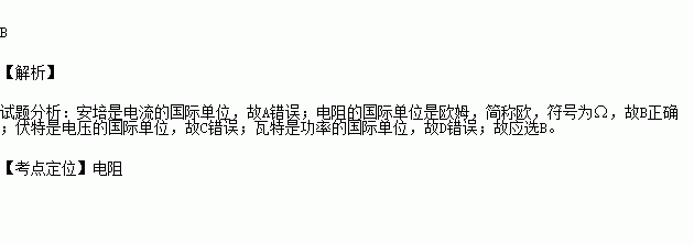 A.安培 B.欧姆 C.伏特 D.瓦特