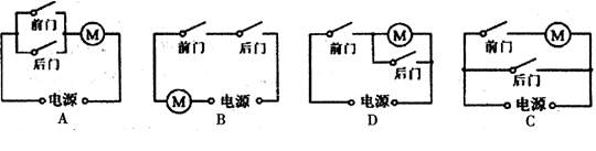 环保越来越被人们重视,电动公交车也由此进入人们的视野,它的动力来源于电动机,前、后两门(电路开关)中任一个门没有关闭好,电动公交车都无法行驶。图中符合要求的电路是